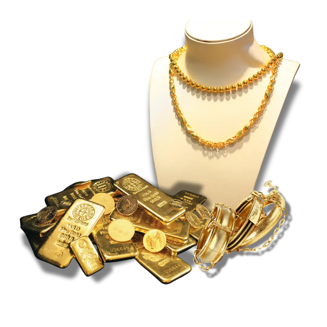 Beginnen Sie damit, Ihr Gold zu uns zu bringen. Sie müssen keinen Termin vereinbaren – kommen Sie einfach während unserer Öffnungszeiten vorbei. Wir kaufen verschiedene Arten von Gold an, darunter Schmuck, Münzen, Barren und mehr.